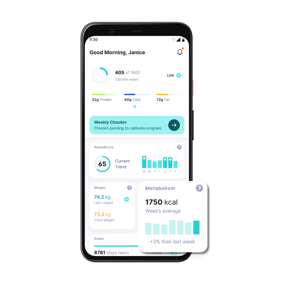 This means Alpha Coach can adapt to changes in your metabolism, ensuring you never plateau and keeps pace with your ever-changing energy needs to ensure your calorie targets are appropriate for your goals.